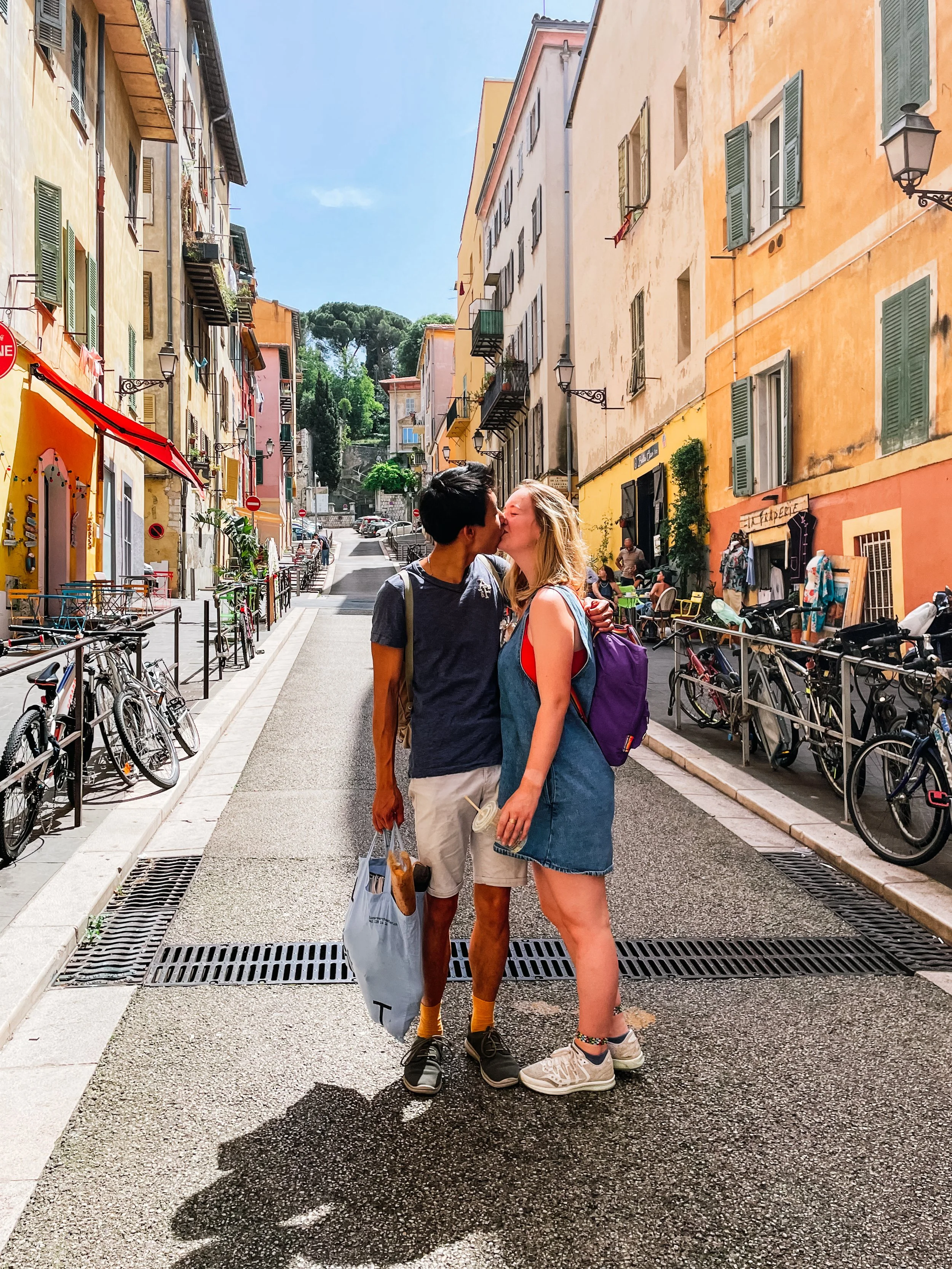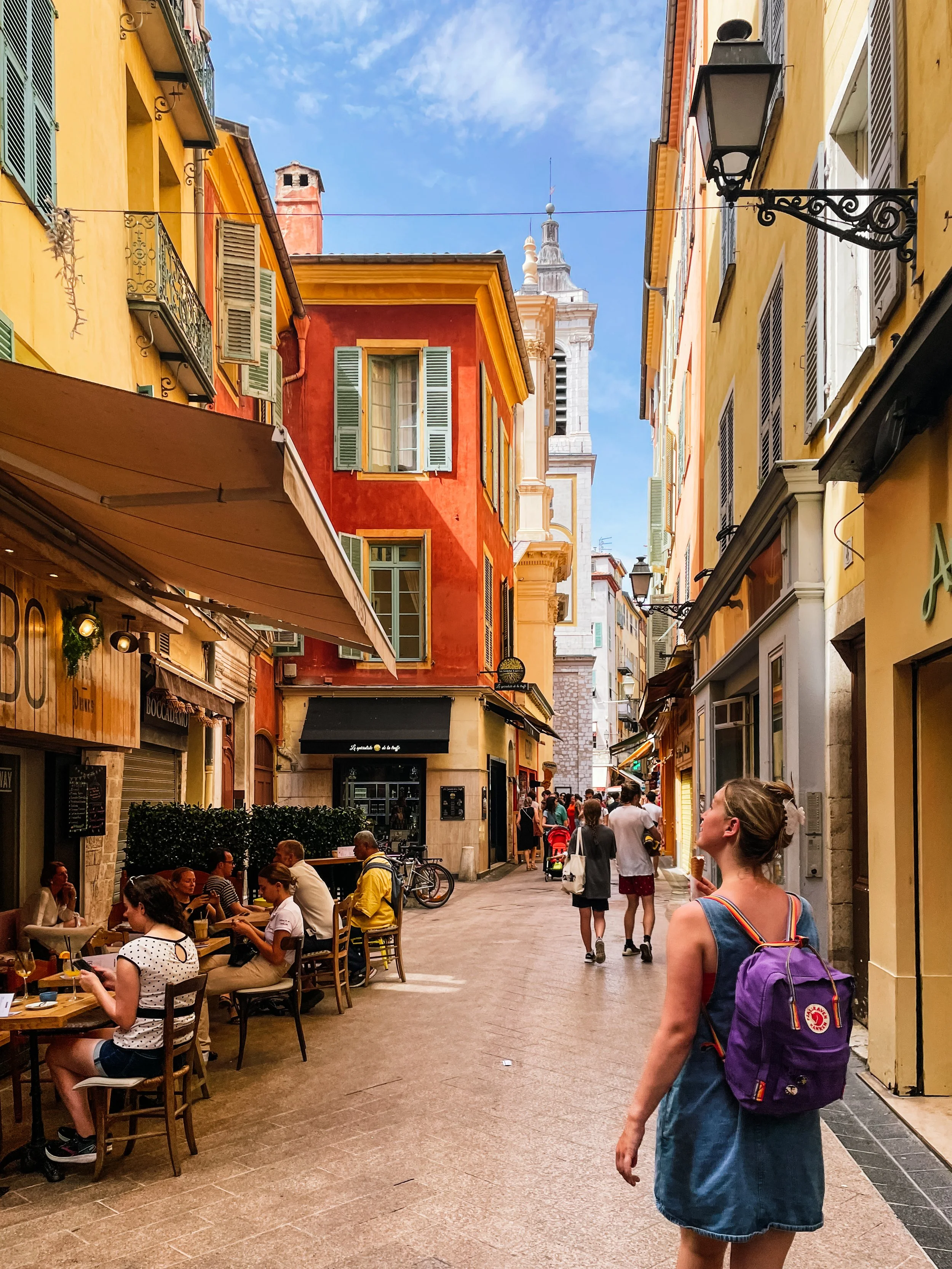 nice is well known for carjacking, so it’s always best to keep the car parked inside a supervised lot. that is what we did. we shopped for a cozy picnic by the beach and strolled through the old town’s pastel and orange. as if they had an unspoken rule to paint their cities the liveliest and dreamiest colors possible. we had countless rounds of ice cream and iced coffee, i lost my credit card before we arrived at a viewing platform and finally, there it was. the ocean.