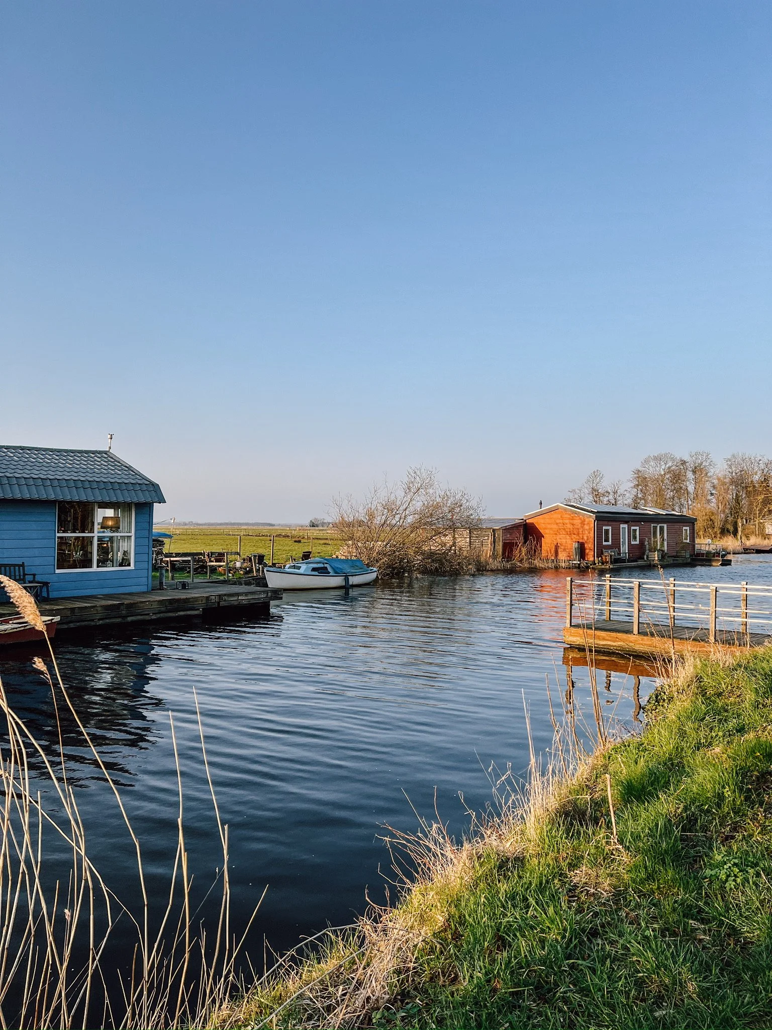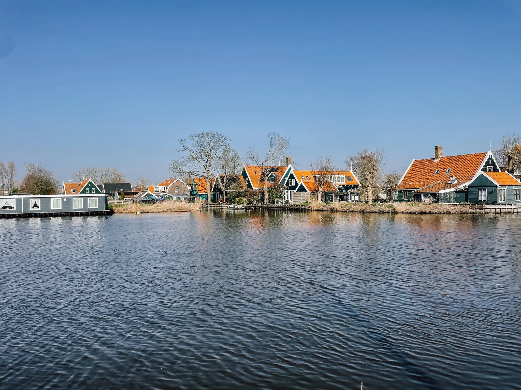 we strongly encourage you to ride your bike straight to broek in waterland if you plan a calm and refreshing countryside bike tour. the city ferry out of amsterdam is free, and you ride along a peaceful river canal filled with houseboats that showcase the unique living in the netherlands.