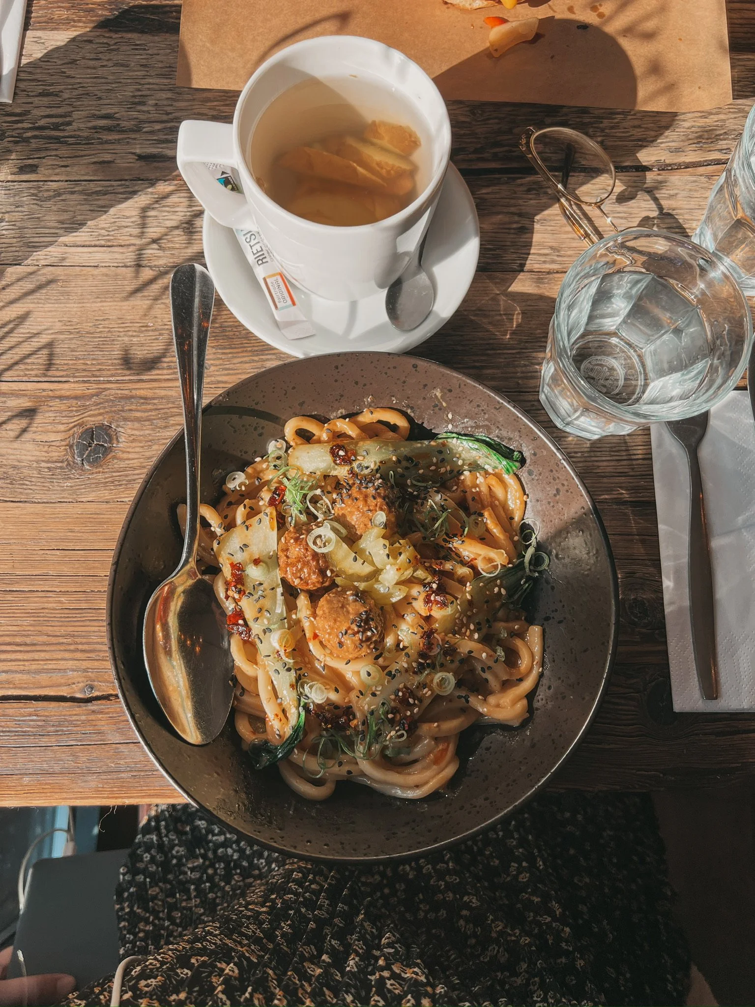SOIL vegan café. one of our favorite vegan restaurants we’ve ever been to - the udon noodles are a must-try.