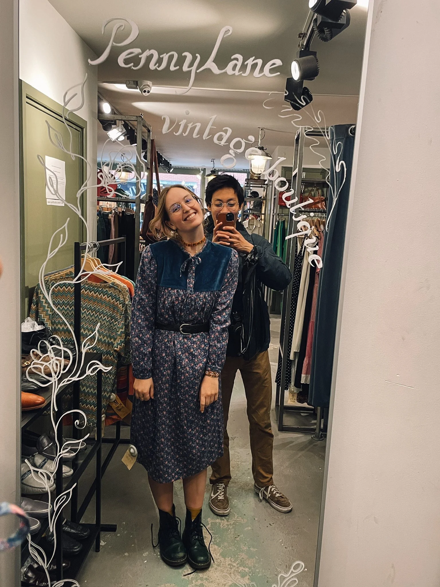penny lane. amsterdam is filled with vintage clothing stores. if you care about a sustainable lifestyle and clothes that tell stories, you’ll find well curated pieces in all of those stores. our fav spot in de pijp was penny lane, where we stumbled upon a beautifully tailored dress in a swedish granola-girl style for evelyne.