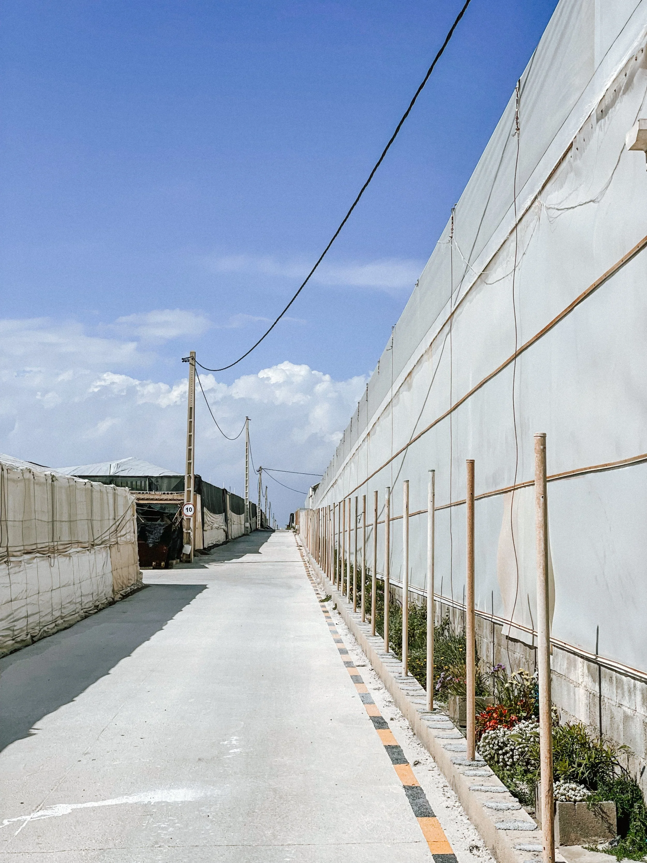 the view between the greenhouses