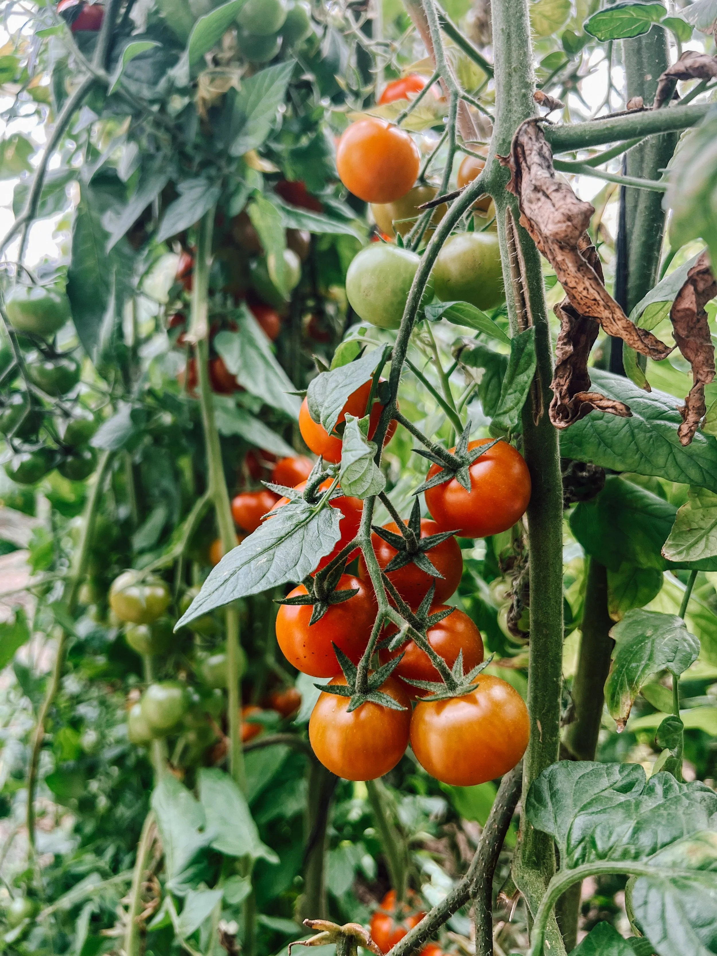 Tomatoes in the middle of their growing journey