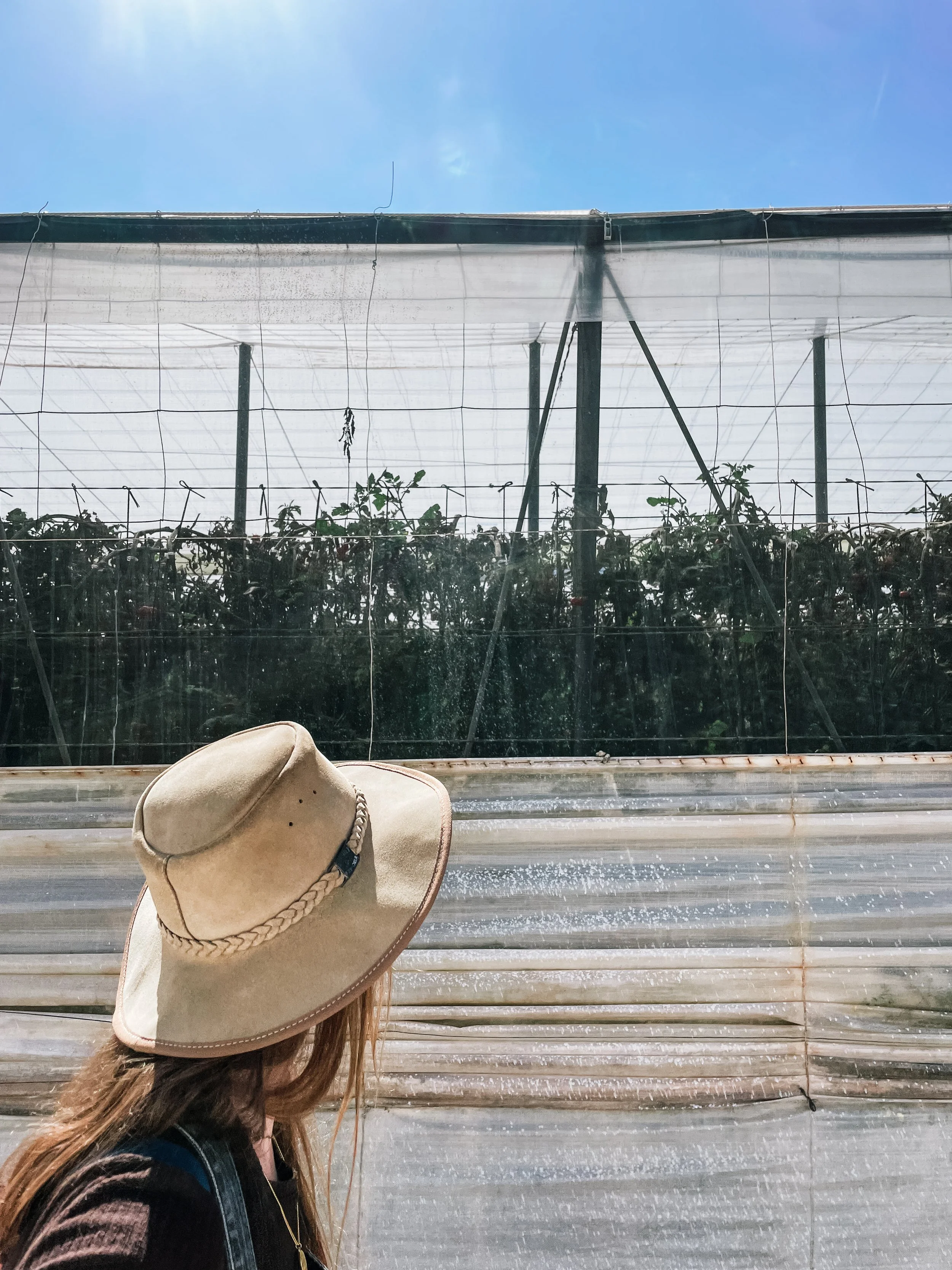 even beyond the visible abundance of plants, research has made enormous strides in recent years. with noticeable passion, the owner explains to us the sophisticated water system in her greenhouses. the vegetables no longer grow in regular soil, but in small, recycled plastic boxes filled with high-quality coconut fibers.