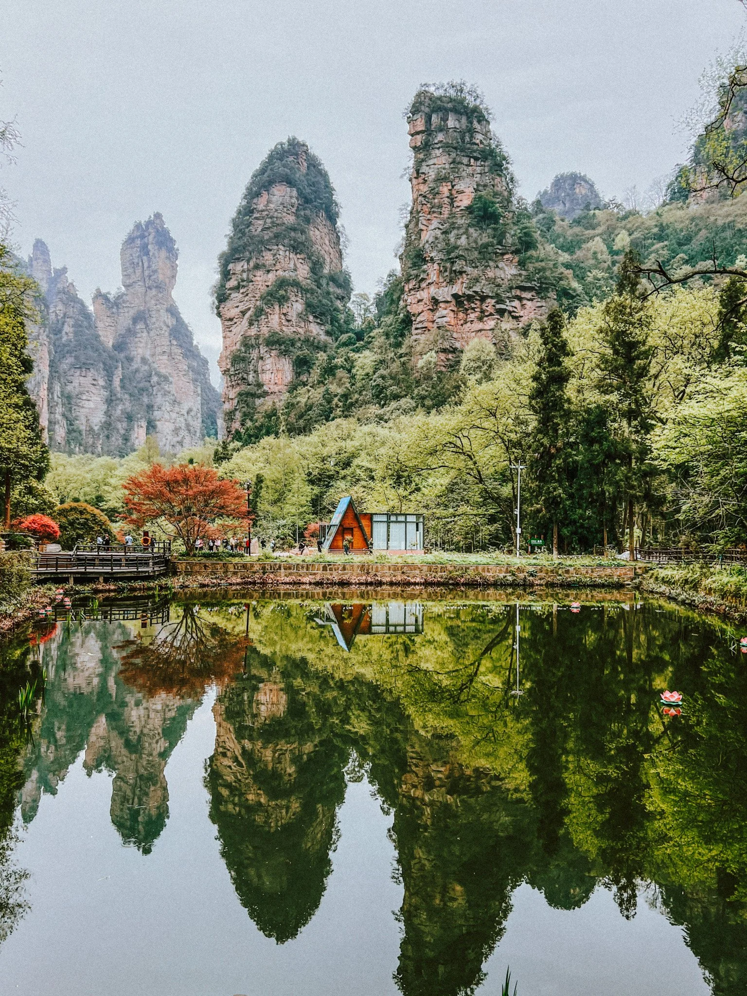 pure peacefulness - a pond reflecting the rocks of zhang jia jie
