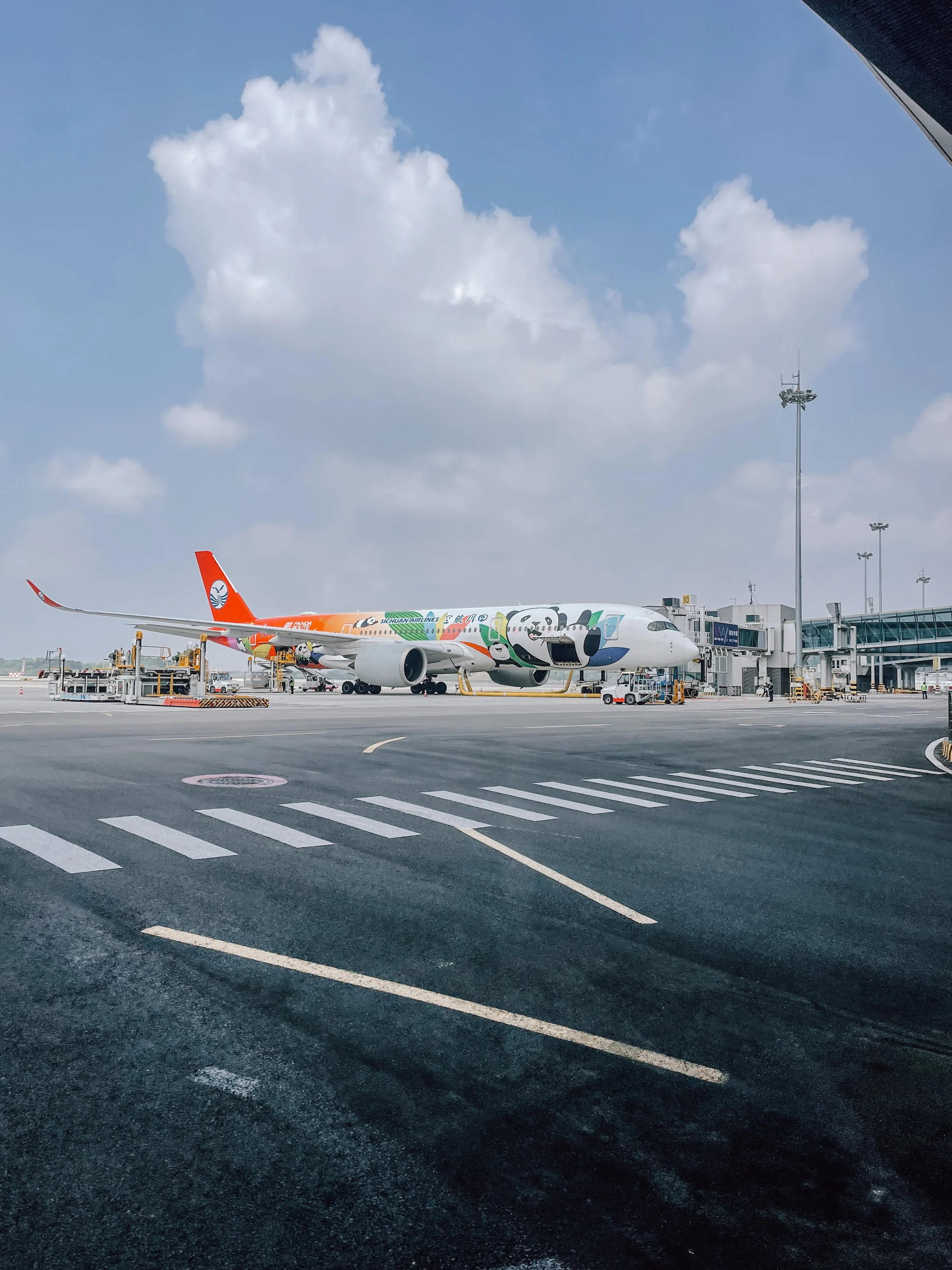 our journey continued to chengdu in sichuan. for this leg, our driver took us to zhang jia jie airport, a charming little airport where everything went smoothly, and before long, we were on our flight to chengdu.