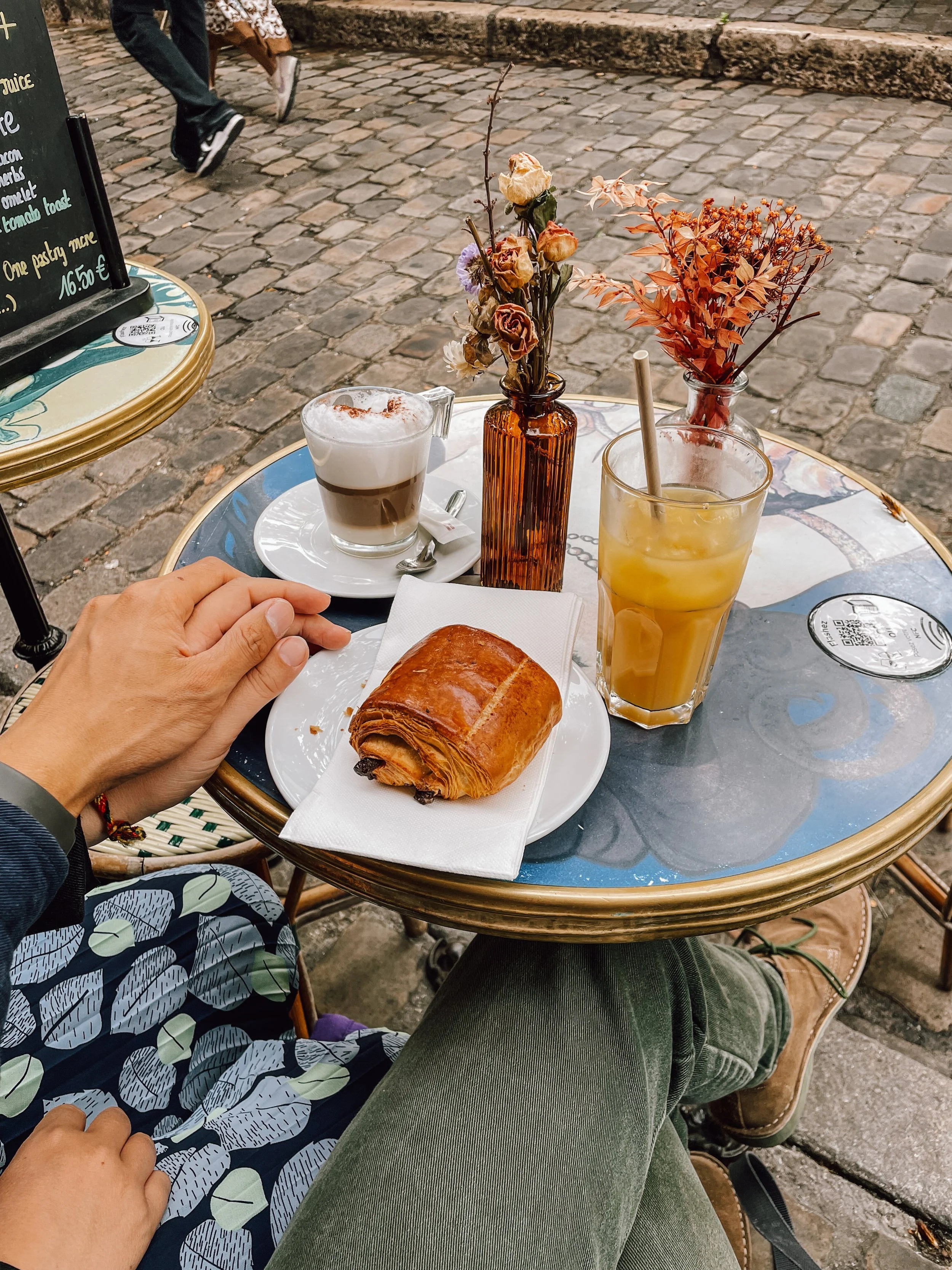 it’s still quiet. with a warm drink and a french croissant, you can perfectly enjoy the slow life there and observe how the streets slowly fill with people of all origins. more and more artists drag their easels there and get ready for the day.
