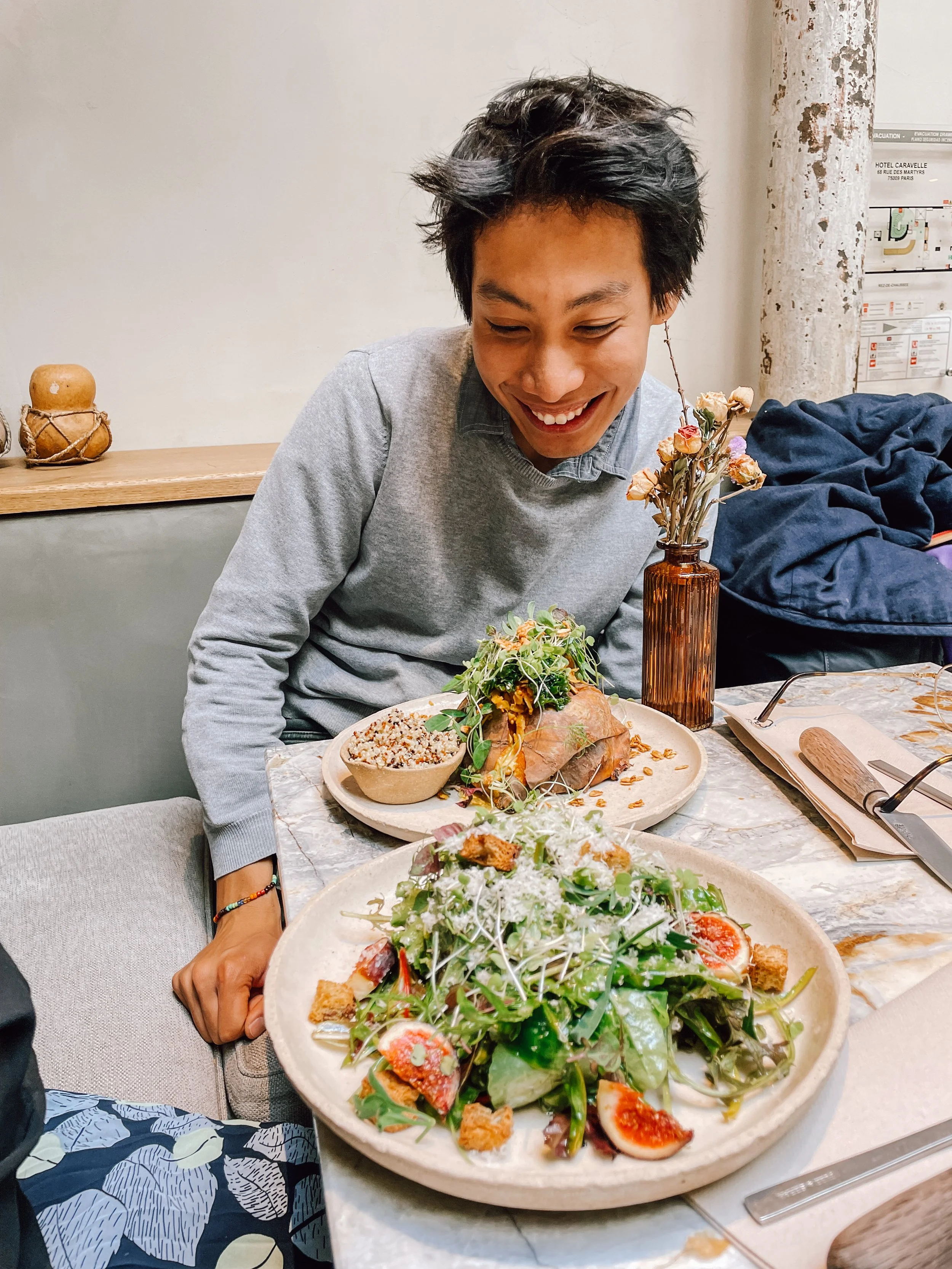 frank says that on a honeymoon paris trip, this is the hotel we gonna stay in. it’s a yoga place, offers all-vegan restaurant.