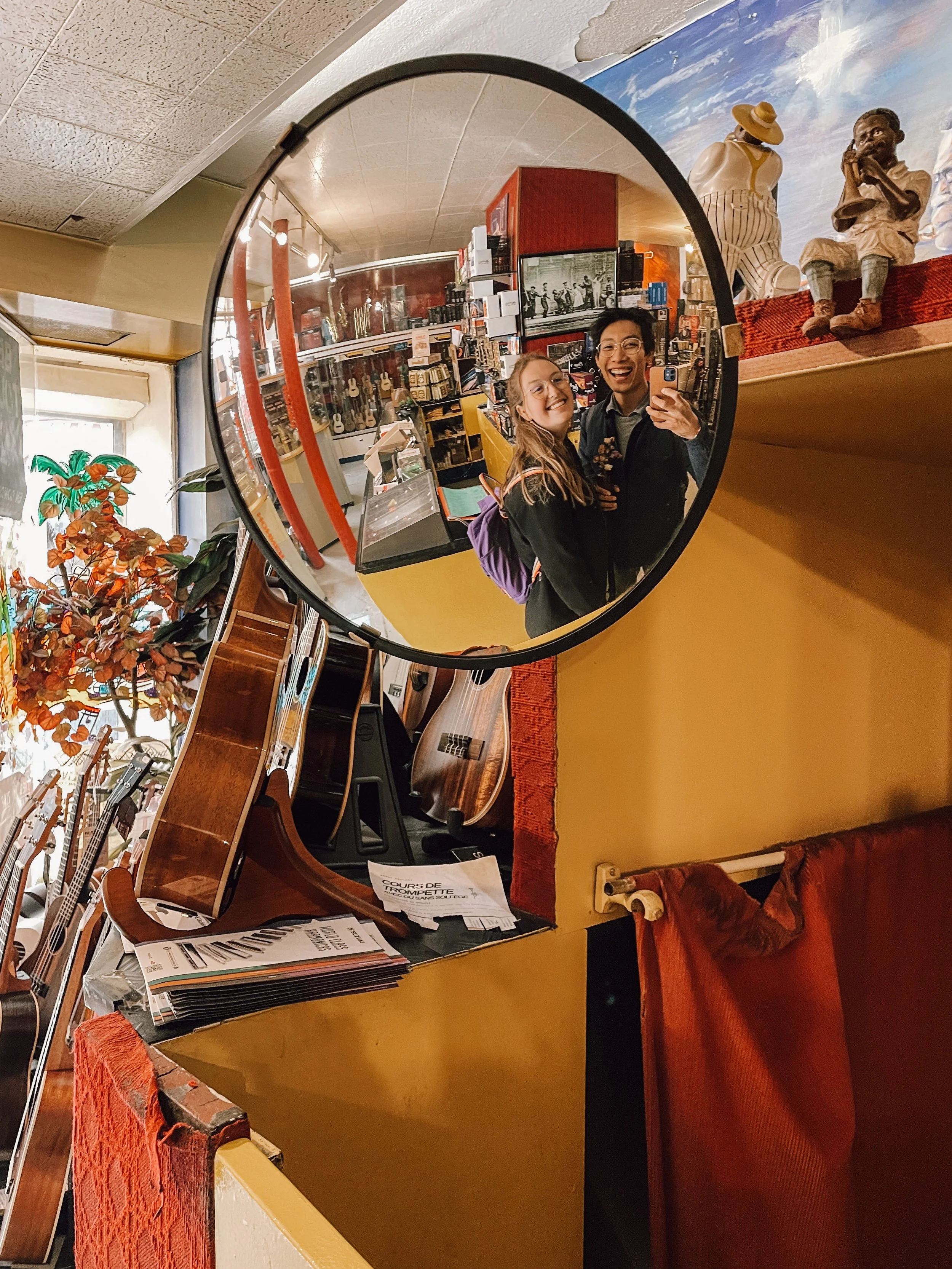 this used guitar store on guitar street has a special mirror!